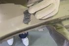 昔は針金など熱して亀裂の中に溶かし込んで入れたり、時間のかかる作業でした。最近では専用のピン、専用の器具を使い綺麗に溶かし埋めていきます、その後裏から強力なボンドで固定してパテなど処理していきます。