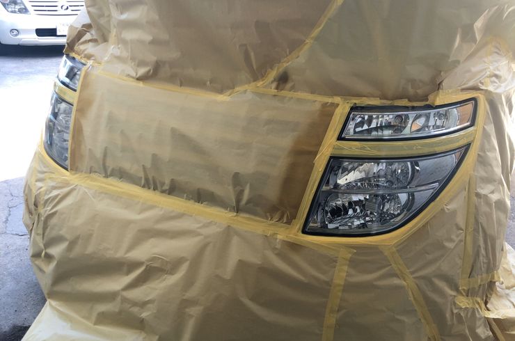 日産 エルグランドヘッドライト磨き😀クリア塗装しました(*^^)v